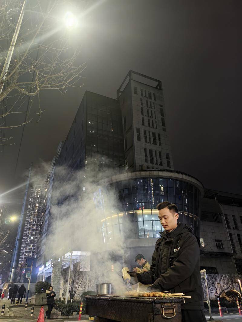 傍晚的醉美大道车流不息、烟火氤氲,街边特色小吃铺内食客围坐,透亮的路灯洒入铺内,餐桌明亮整洁,店主一边烤制美食,一边热情招呼往来客人,烟火气十足。“以前出摊要自己备一个大灯泡,现在换成了新路灯,这整条路都亮堂堂的,我们做生意更舒心了。”烧烤摊老板陈发建说。