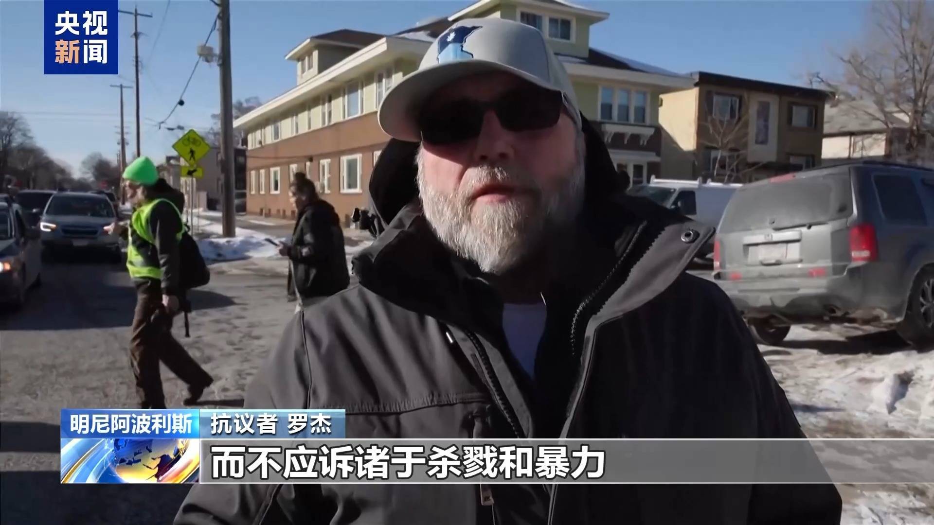 抗议者 罗杰:处理移民问题的方式有很多,而不应诉诸杀戮和暴力。我的妻子也是大医院的一名护士,亚历克斯·普雷蒂的被杀让大家忍无可忍,正如你所看到的,有许多人已经这样抗议了很久,而且我们还会继续这样做下去,因为情况必须得到改变。