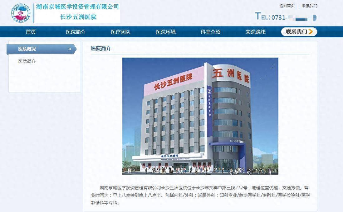 湖南京城医学投资管理有限公司长沙五洲医院。(来源:医院官网)