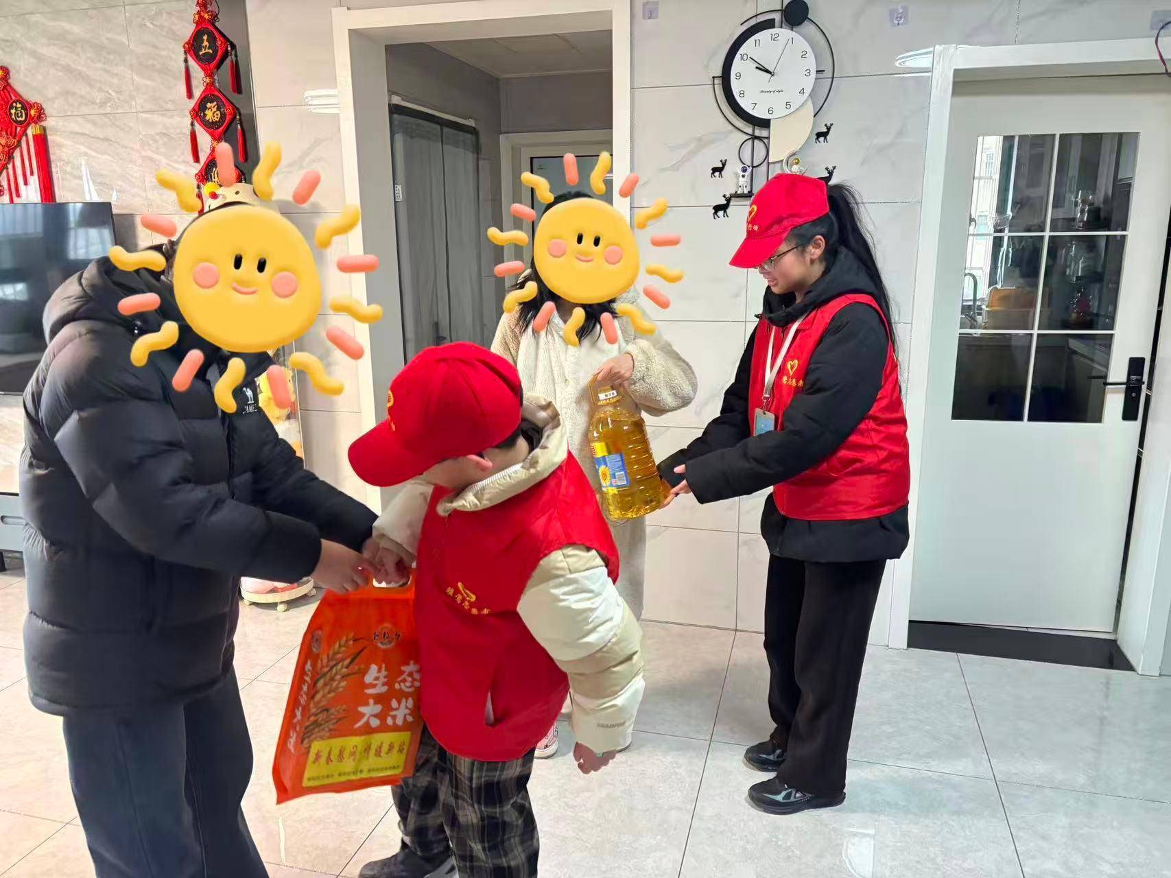 活动现场,百余名“红马甲”志愿者化身“政策宣讲员”“爱心传递者”。在独居老人李奶奶家,志愿者们不仅送上米面粮油,还帮忙打扫卫生、张贴春联。9岁的黄一一用稚嫩童声朗诵《新年你好》;在重病患者王阿姨家中,志愿者们倾听生活困境,留下联系方式承诺长期帮扶。在留守儿童家中,志愿者们帮助辅导作业,一起做游戏下象棋。正如活动负责人所言:“青春不仅是奉献,更是责任与智慧的交融。我们培养的不仅是志愿者,更是有温度的社会栋梁。”
